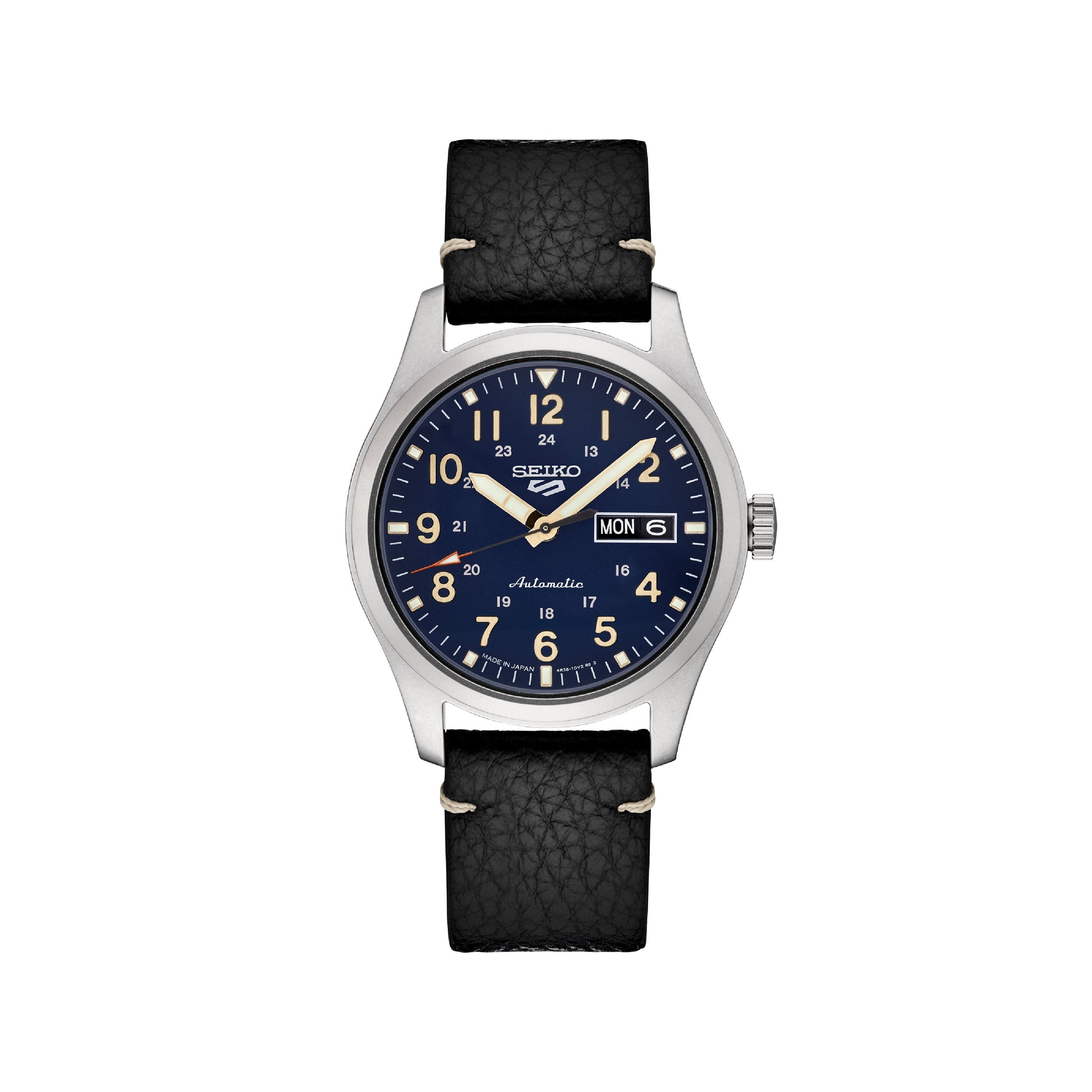 Azul, Números Arábigos Beige, Manecillas con Lumibrite Segundero con punta Roja.